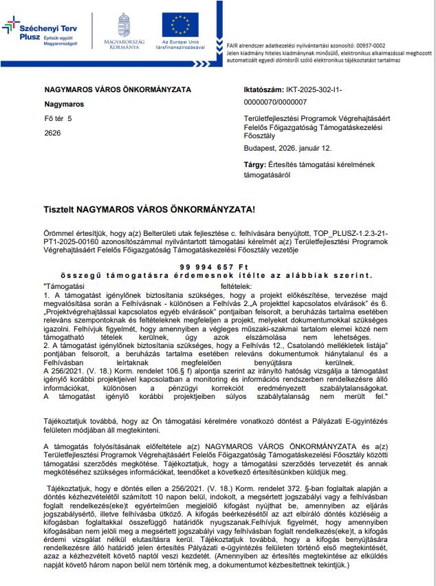 Jó hír Nagymaroson – útfejlesztési döntés született!